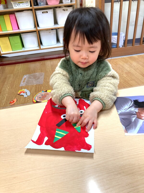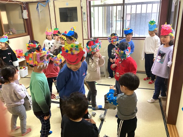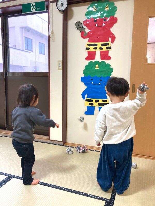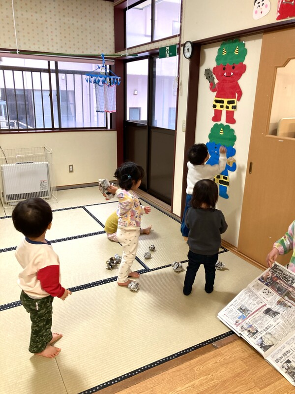 もうすぐ節分 もうすぐ節分…ということで、こどもたちは、鬼のお面を作ったり、お部屋に登場した鬼にボールをぶつけたりと節分ごっこを楽しんでいます。外はまだ雪模様ですが、節分を迎えれば暦の上では春🌸うれしい春を迎える準備を楽しんでいるこどもたちです(^^) 2026/01/28