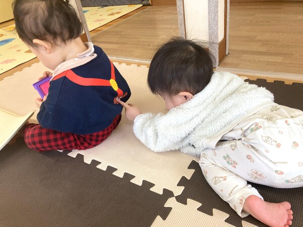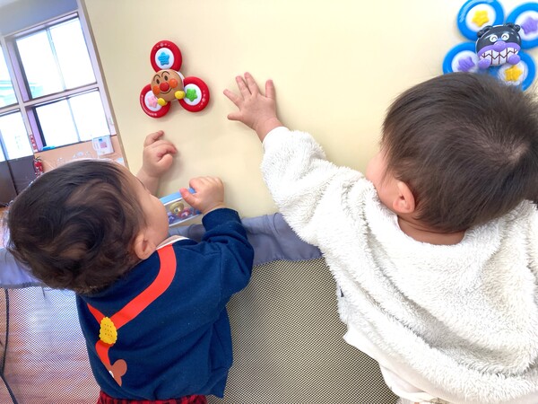 興味津々! 伝い歩き、よちよち歩きができるようになったぱんだぐみさんは、興味・関心のあるものや場所へと移動して、探索活動を楽しんでいます。その喜びや発見に共感し、安全面には十分配慮した環境の中で、それそれの探索活動を大切に見守っています(^^) 2026/02/05