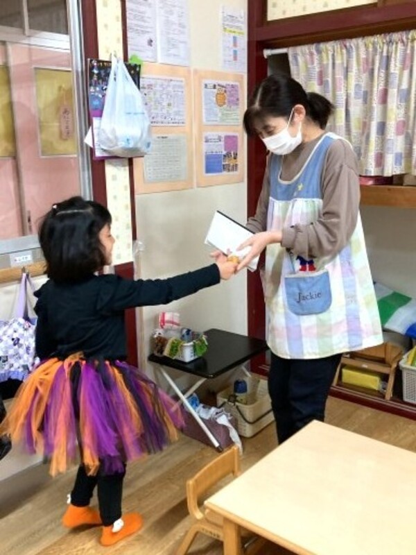 ハロウィンクッキーありがとう♡ 午後は、きりん組さんが手作りクッキーを、「はっぴ〜はろうぃん!!」と声をかけながら、他のクラスのお友だちや先生たちに配ってくれました!きりんぐみさん、とっても美味しかったよ!ありがとう♡ 2025/10/31