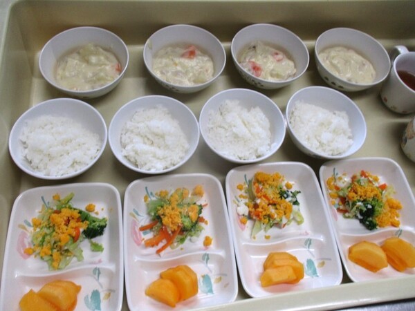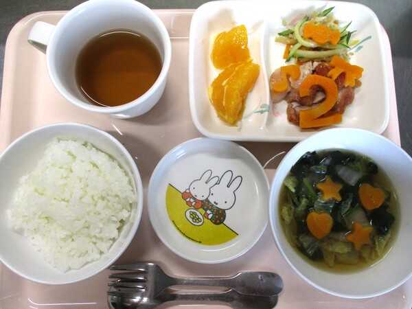 今日の献立〜カミカミ献立〜 今日の献立メニュー*とりにくのみそやき*かみかみサラダ*すましじる*くだもの(オレンジ)今日は、カミカミ献立でした。かみかみサラダの中には、さきいか・切り干し大根・もやし・きゅうり・にんじんなど、よく噛んで食べる食材が入っていました。噛むことは、脳・言葉・味覚の発達に効果的です!おうちでもよく噛んで食べるよう、声をかけてみてください(^^)今日もごちそうさまでした♡ 2025/11/07