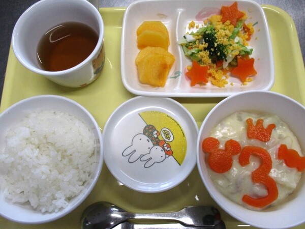 11月の誕生日メニュー 11月誕生日メニュー*ピラフ*ひとくちカツ*そえやさい(トマト・ブロッコリー)*わかめスープ*くだもの(みかん)おいしかったです(^^)ごちそうさまでした♡ 2025/12/01